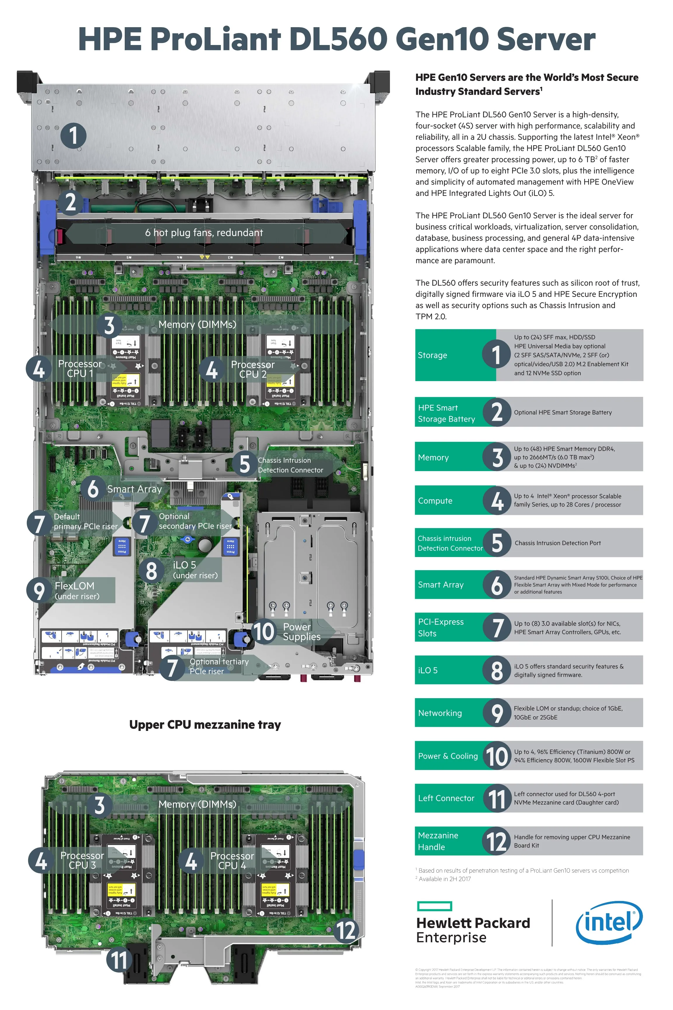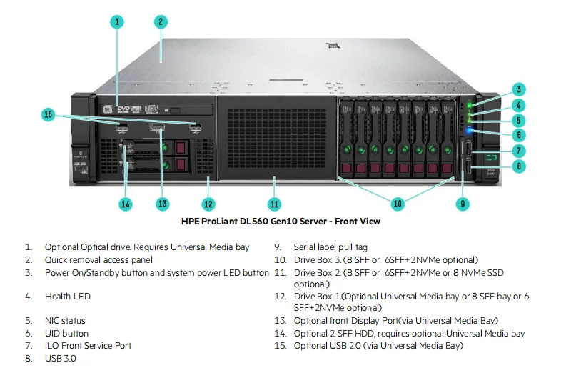 Infrastructure management | HPE iLO Standard with Intelligent Provisioning (embedded), HPE OneView Standard (requires download) HPE iLO Advanced, HPE iLO Advanced Premium Security Edition and HPE OneView Advanced (optional require licenses) | |||