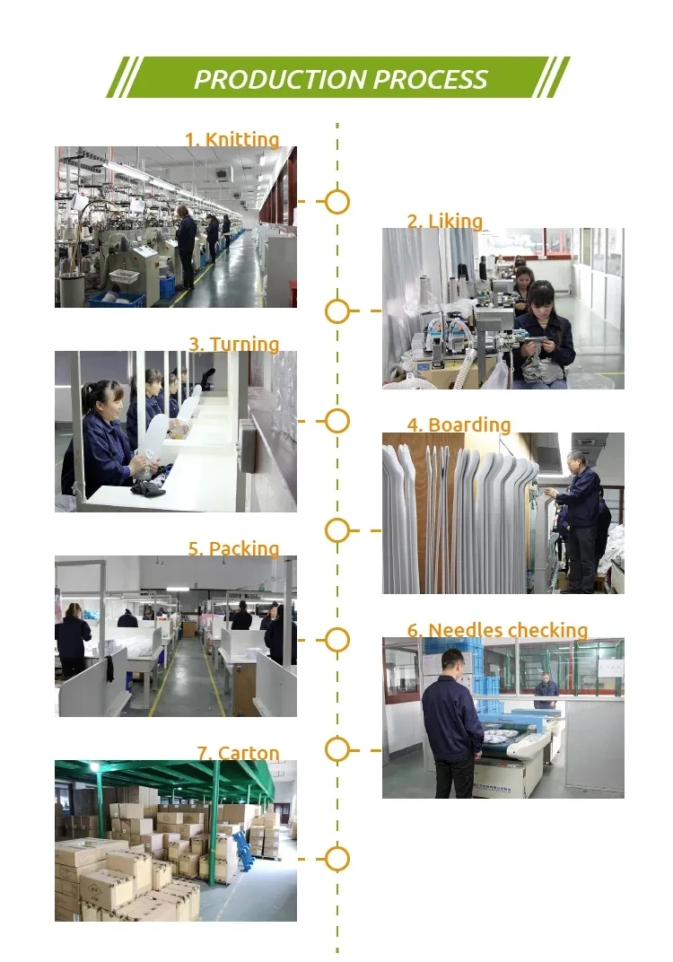 Q2. What is your OEM service procedures? - If you don't have any idea about the socks designs,then please contact us,our designers will help you to make the artwork as your demands. - If you have your own artwork,then we will confirm the artwork with you and modify to fit produce.(Of course,we can sign the confidentiality agreement with you before the cooperation) - Making counter sample within 5-7 days. - After the quality, the price, and packing details are confirmed, we can start mass production. - Confirm the shipment detail of products and the goods can be shipped after inspection.