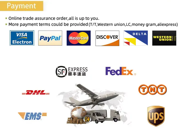 Payment Terms: | T/T, Western Union, Paypal, Trade Assurance, others can be negotiated. Only need 30% deposit to start production, make everything easier for you. |