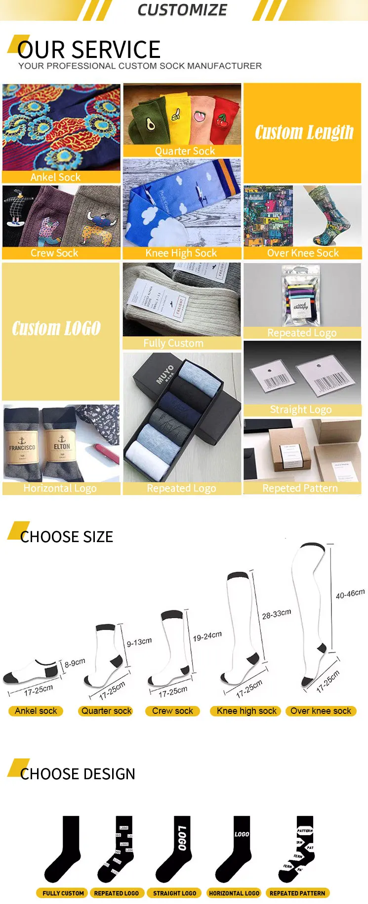 Logo, Design and Color: | Offer Custom option, make your own designs and unique socks. |