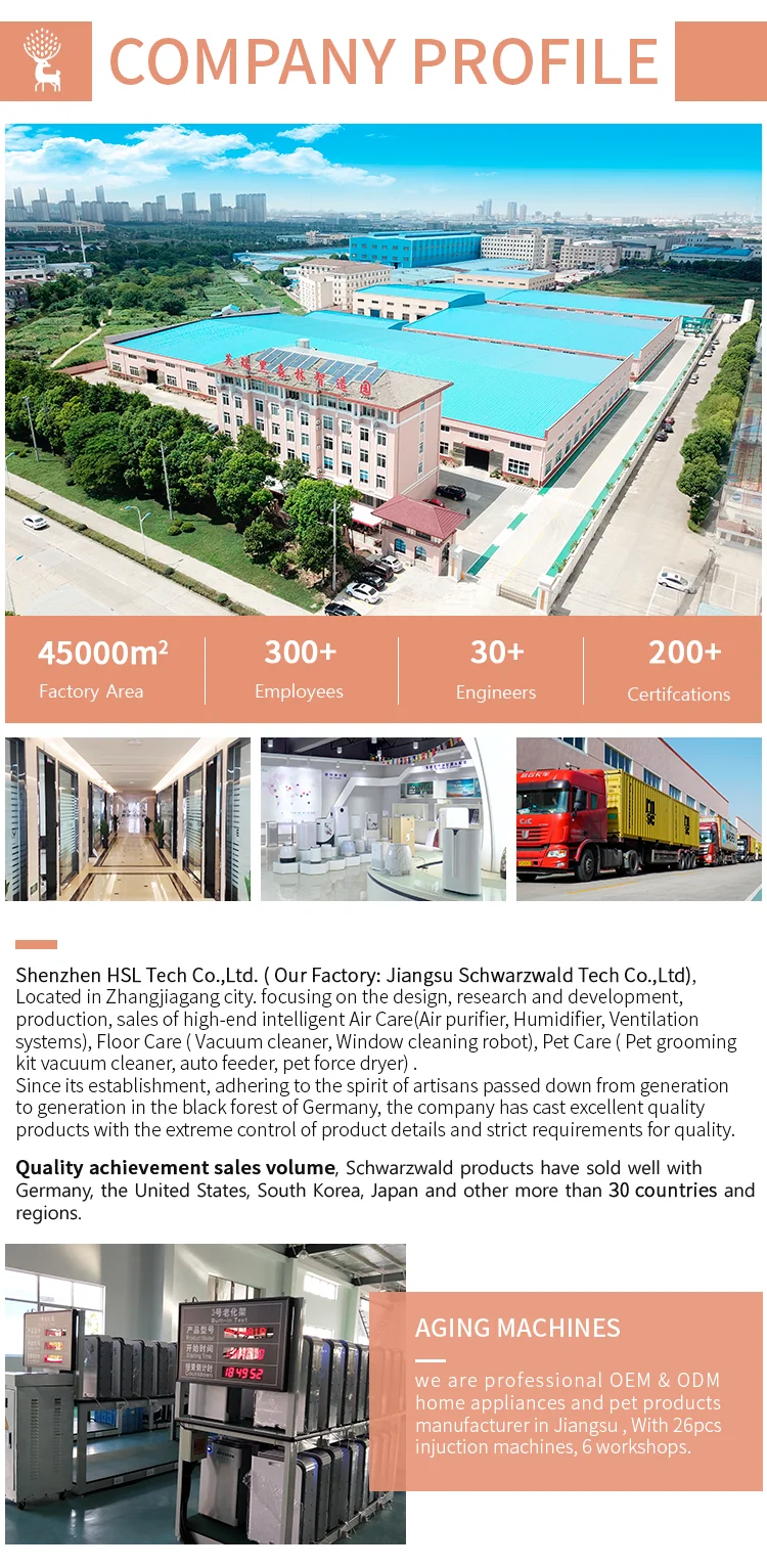 Focusing on the Air care, Pet care, Floor care Products, with 40 years Export experiences, We have 45000 square meters OEM&ODM&OBM manufacturer. Quick feedback, Strong R&D team and Perfect quality management system is our advantages. Customer: Daikin, GEA.