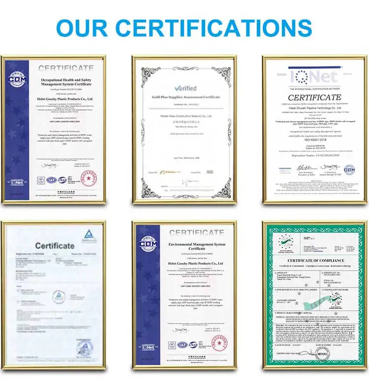 A: For fittings, coupling (socket), elbows, tee, reducer, union, valve, cap some electrofusion fittings and compression fittings.