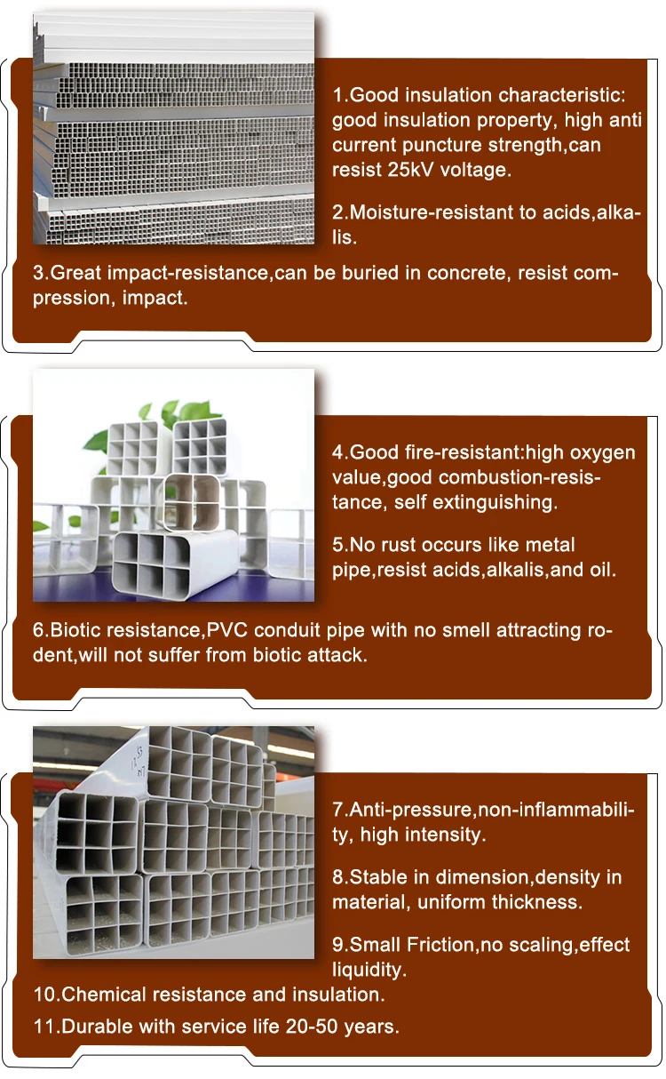 Factory direct sale black white plastic porous pipe 2021 hot sale 3x3 PVC hollow sheet low price long cable package square tube