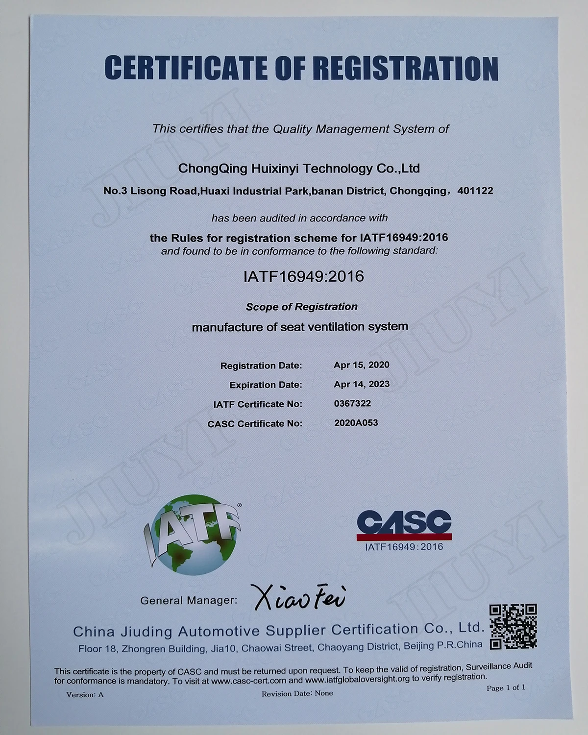 1. Certified by IATF16949 and own 3 patents ;