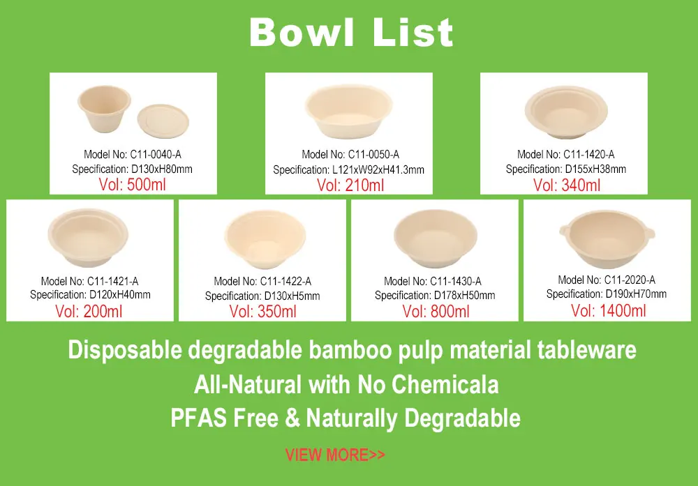 Bamboo Pulp Products | All-Natural with No Chemicals | *No residues of pesticides and fertilizers *no bleach added *Has natural antibacterial function *Free from microbes and allergens | 100% biodegradable | High strength hardness | Fluorine-free oil repellant | *Store in a freezer at minus 18 degrees for three months *High temperature 250°C, microwave oven, oven, 5 minutes | Less impurities |