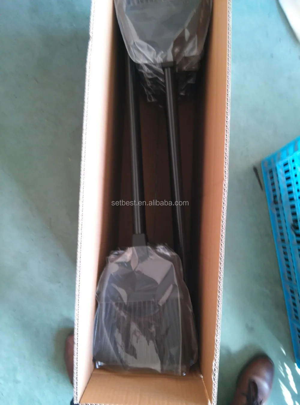 1.Heavy duty broom ; 100cm metal handle 2.Ideal for cleaning hard-to-reach areas; 3.Flagged Sturdy pvc fill; 4.Elecro-static wide broom attracts hair and dust; 5. Fits painted metal handle with hang-up grip.