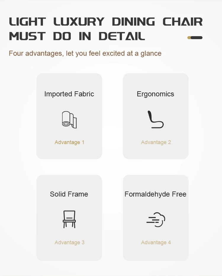 A1: Luxurious dining chairs must be made in detail. Four advantages, let you feel excited at a glance.