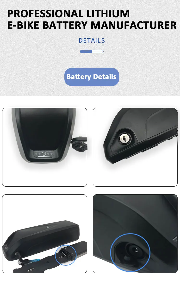 Downtube battery agli ioni di litio per bicicletta elettrica 48V 36V 52V 10Ah 15Ah 20Ah battery Hailong ebike per bici