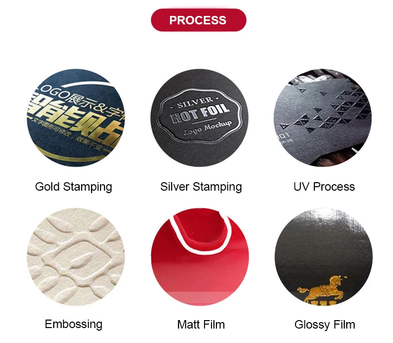 Printing | Glossy/Matt Varnish, Glossy/Matt Lamination, Gold/sliver foil stamping, Spot UV, Embossed, etc |