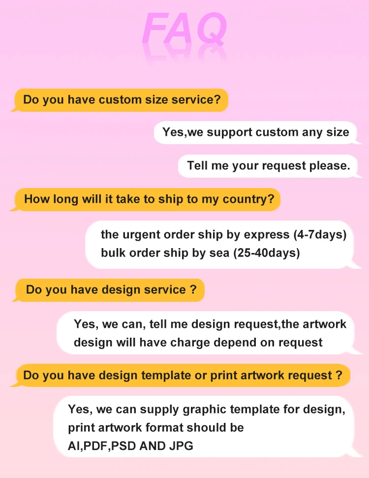 * Where is your factory? We are located in Changzhou city Jiangsu province, near shanghai about one hour drive, welcome to visit our factory. * What are your main products? We can supply outdoor series and indoor series advertising products, more than100 types: tension fabric display: include backdrop display stand, pop up counter, promotion counter, tradeshow hanging banner, 3D backdrop wall. pop up stand , roll up banner, pavement sign, flying banner, portable tent and so on. * Can you accept the custom size? Yes, pls tell us your request size. * Can you help with my design? Artwork email proofs at no additional cost. The artwork should be in JPG, PDF, PSD, AI, EPS, TIFF, CDR format; CMYK more than 72DPI. * How long is the production time? Sample and rush order time is 1-3 days Mass production time depends on the quantity. For smaller orders,5-7 days while for big orders,15-20 days. * What is the artwork format and pixel? Pls supply PDF, AI Format to us CMYK more than 120 DPI. * Reason To Choose Us? Best service and quickest reply. We have a profession sales team that can give you quickest and professional answers for your need.You can contact us any time by trade manager or email. We have profession and experience engineer department and many skilled workers we can meet all the professional needs from customers.