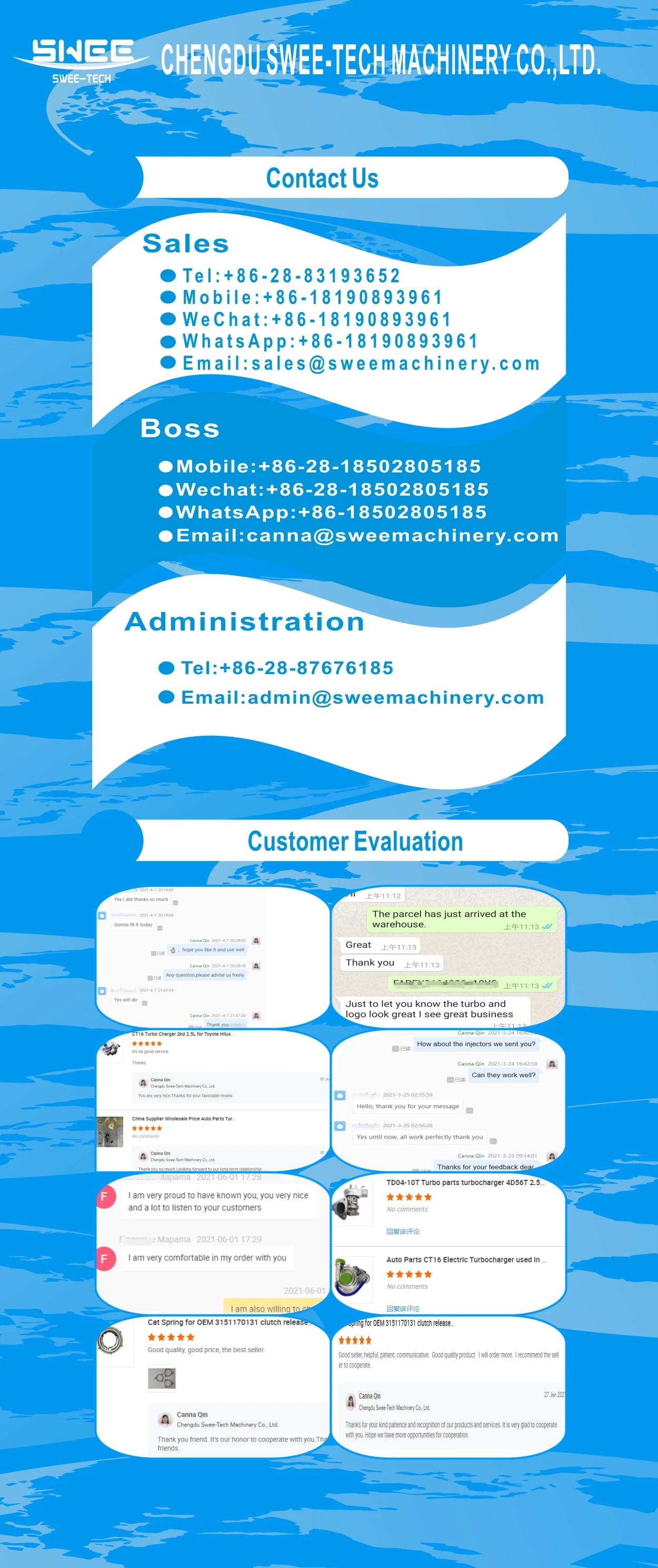 Chengdu Swee-Tech Machinery Co.,ltd. is a reliable and trustful intermediary for the power transmission industry and automotive aftermarket segments between South America,North America,Europe and Asia. We specialize in transmission, steering, suspension,brake,engine,and relative complementary spare parts and auto accessories. The main technical engineers, product managers and the founder of the enterprise have engaged in the transmission and automotive spare parts industry since 1999. Due to reliable production bases with verified manufacturers and understanding of their strengths, we integrate worldwide resources to optimize the demand and supply.We provide top quality products at very competitive prices which allow our customers to rely on a line with high return and excellent performance. We can supply many kinds of small batch goods at one time,timely delivery and flexible policies.We have built good business relationships with over 50 countriies clients all over the world. Chengdu Swee-Tech machinery Co.,Ltd is dedicated to customer satisfaction always...