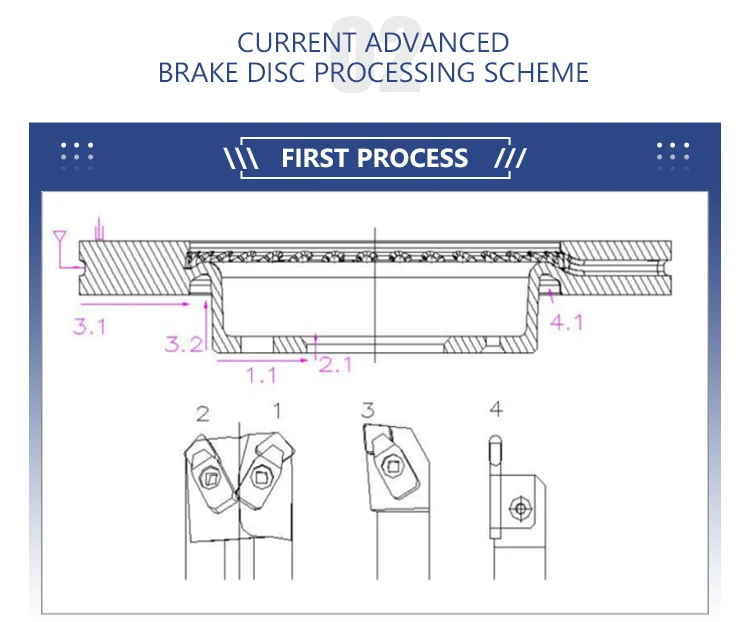 3.1 | (Pad face roughing) | SBN850 CNGN120412 S02020 | CCLNL2525M1204 | 400-500 | 0.3~0.5 | 1.5~2 |