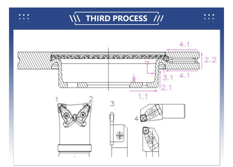 4.1 | (pad face semi-finishing) | SBN850 SCGN090408W | CSLCR2020K0904 | 650~750 | 0.2~0.3 | 0.2~0.5 |