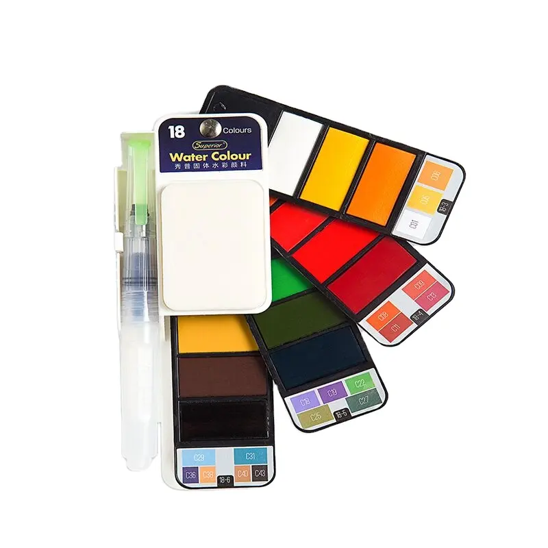 Superior Portable 18/25/33/42 Water Color Painting With Water Brush Bright Color Fan Shaped Thin Solid Watercolor Painting Set US $4.65-$8.49