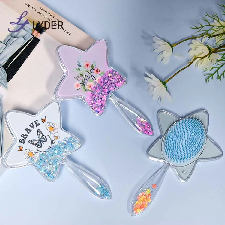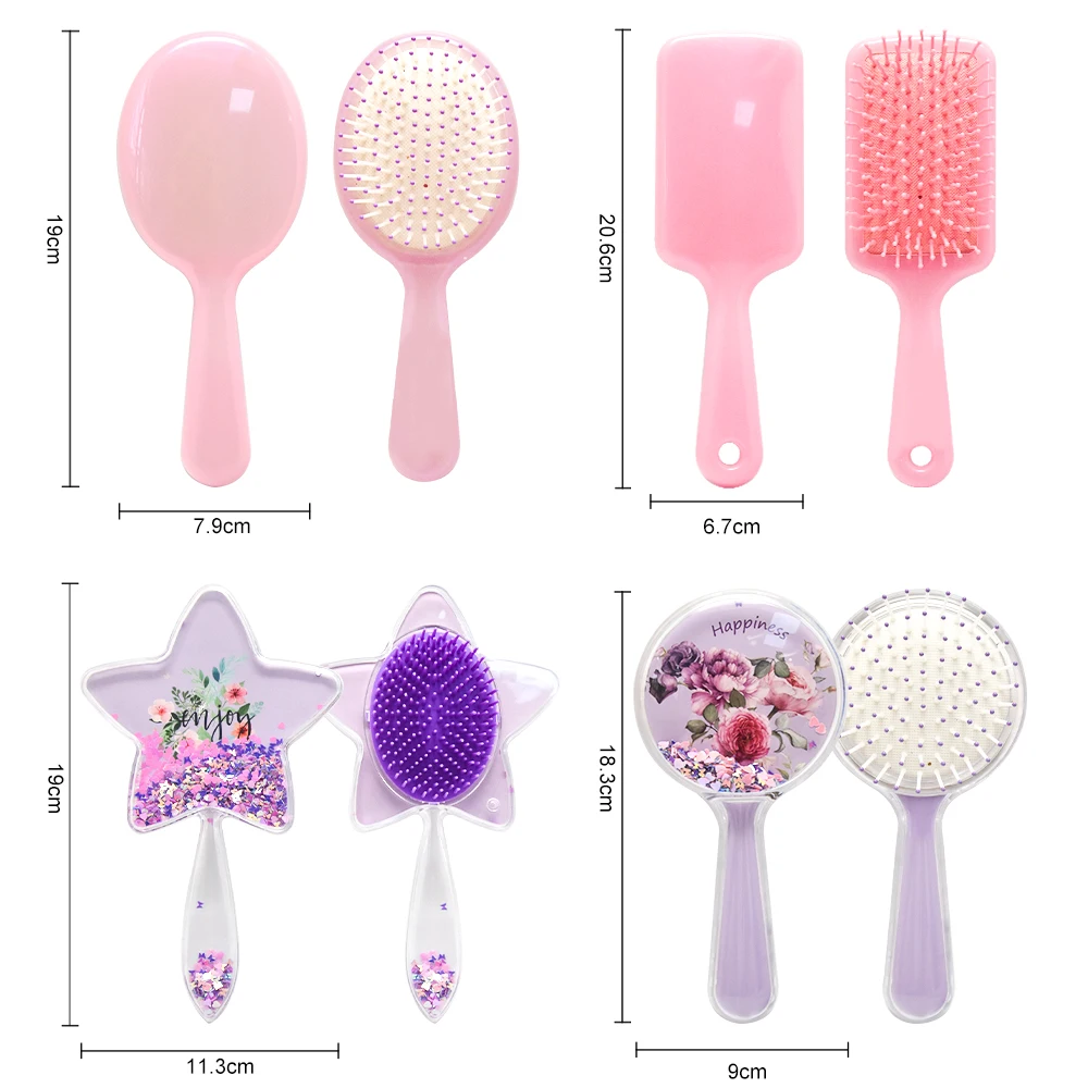 Description | Glitter round oval rectangle star shaped wet detangling hair brush | |