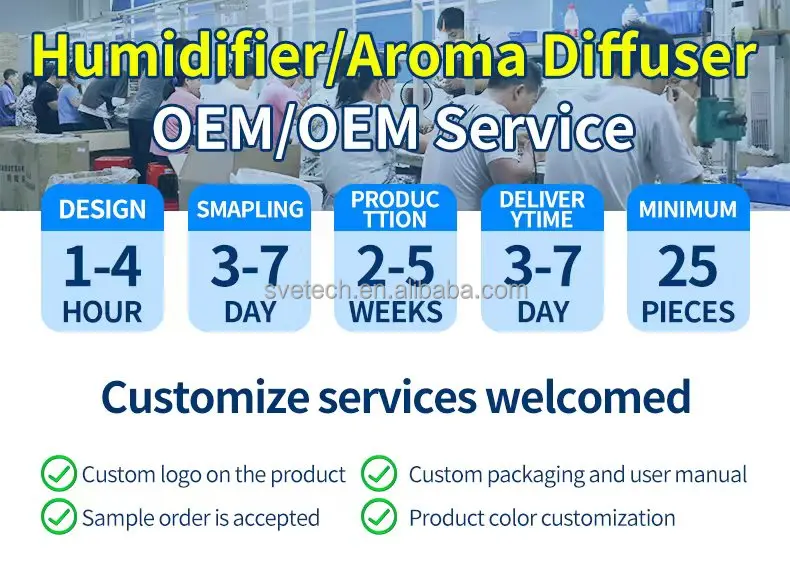 4. why should you buy from us not from other suppliers? 1.10 years of diffuser development 2.3000 square meters factory +320 square meters office 3.50+ most aging test stand 4. We can be OEM / ODM and respond in time 4.100 aromatherapy machine humidifiers 5.20 after-sales service staff