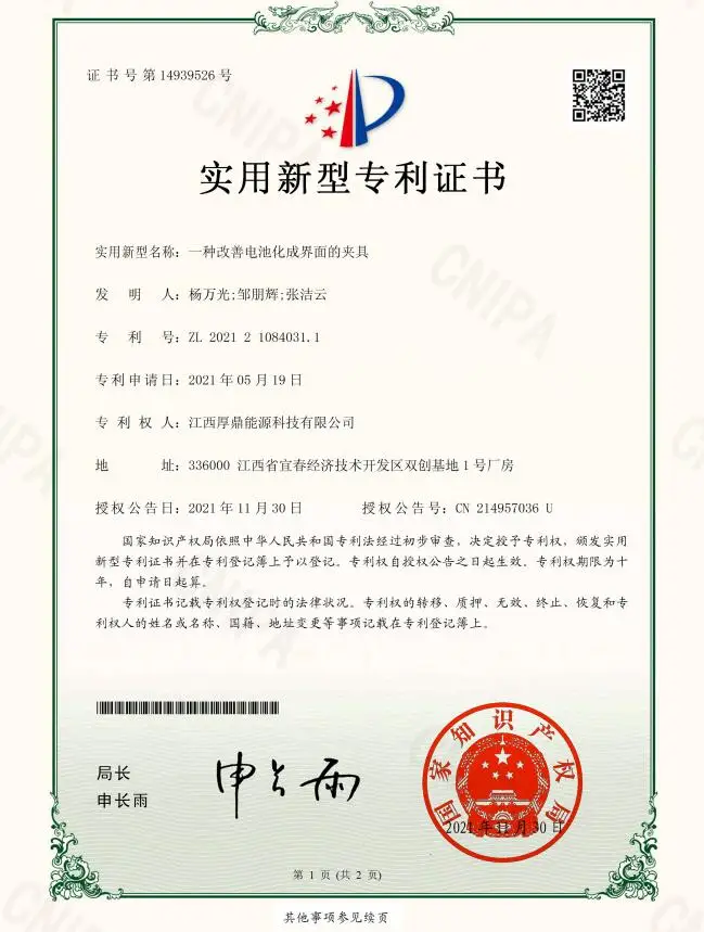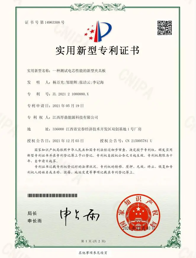 7 | Cycle Life (25±2℃, With splint ,Rest for 30 min between each cycle.) | Charge: 0.5C CC charge to 3.65V, 3.65V CV charge to 0.05C cut-off; Discharge: 0.5C CC discharge to 2.5V | ≥80%Initial capacity @2000 cycles |