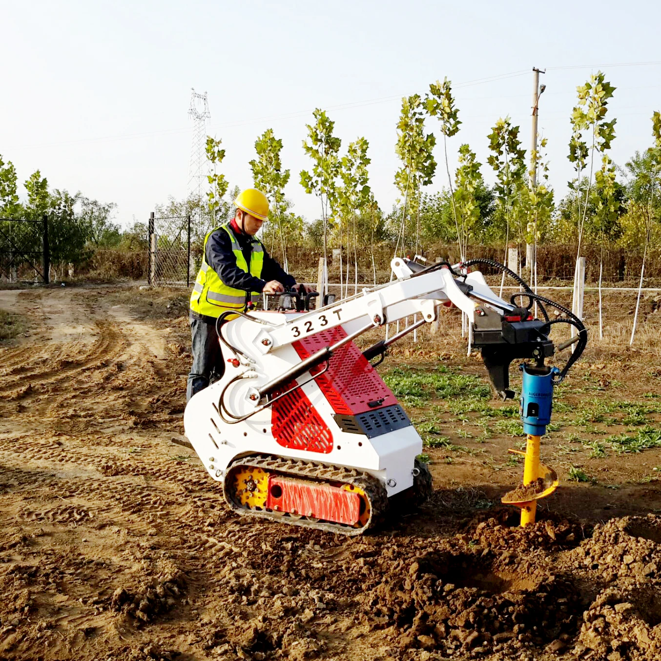 This Drilling auger for post hole with skid steer loader for post hole, construction and cable laying.