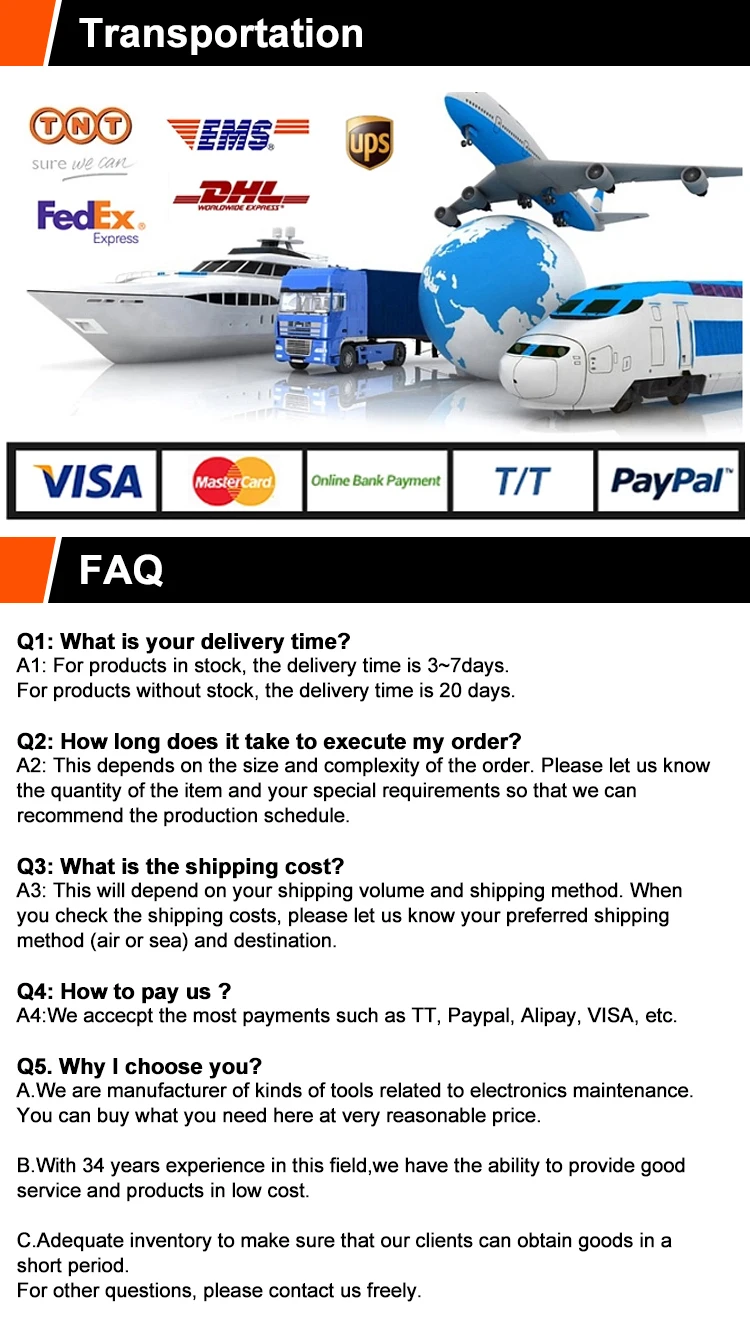 Q5. Why I choose you? A.We are manufacturer of kinds of tools related to electronics maintenance. You can buy what you need here at very reasonable price.