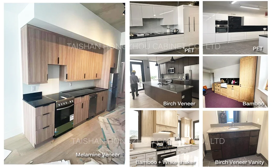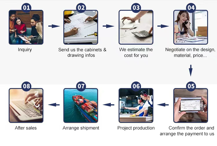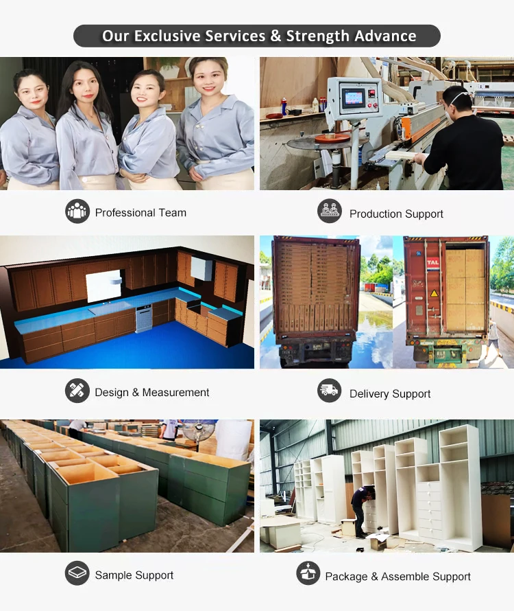 How many cabinets options I can choose? | The cabinet door materials: melamine, uv, pvc, lacquer, glass, veneer and solid wood so that we can meet different types of projects' requirements. | |||||||