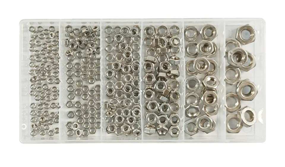Locknut Assortment Locknut Assortment, which can be used for different place.Packing in one plastic box that is good for sale in supermarket.The size can be found in the color card attached in the box.The goods is wide used in the factory and home.