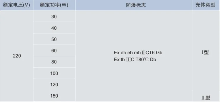 Rated Power | Ex-mark | Degree of protection | Corrosion proof class | Applicable |