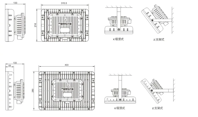 30W-240W | Ex db eb mb II C T6 Gb,Ex tb IIIC T80°C Db | IP66 | WF1, WF2* | Zone 1 & 2 zone 20, 21 & 22 |