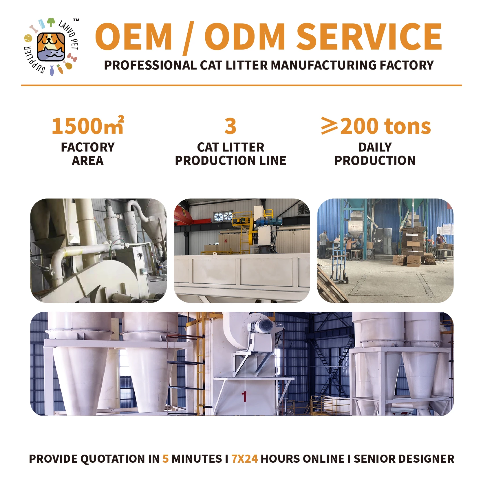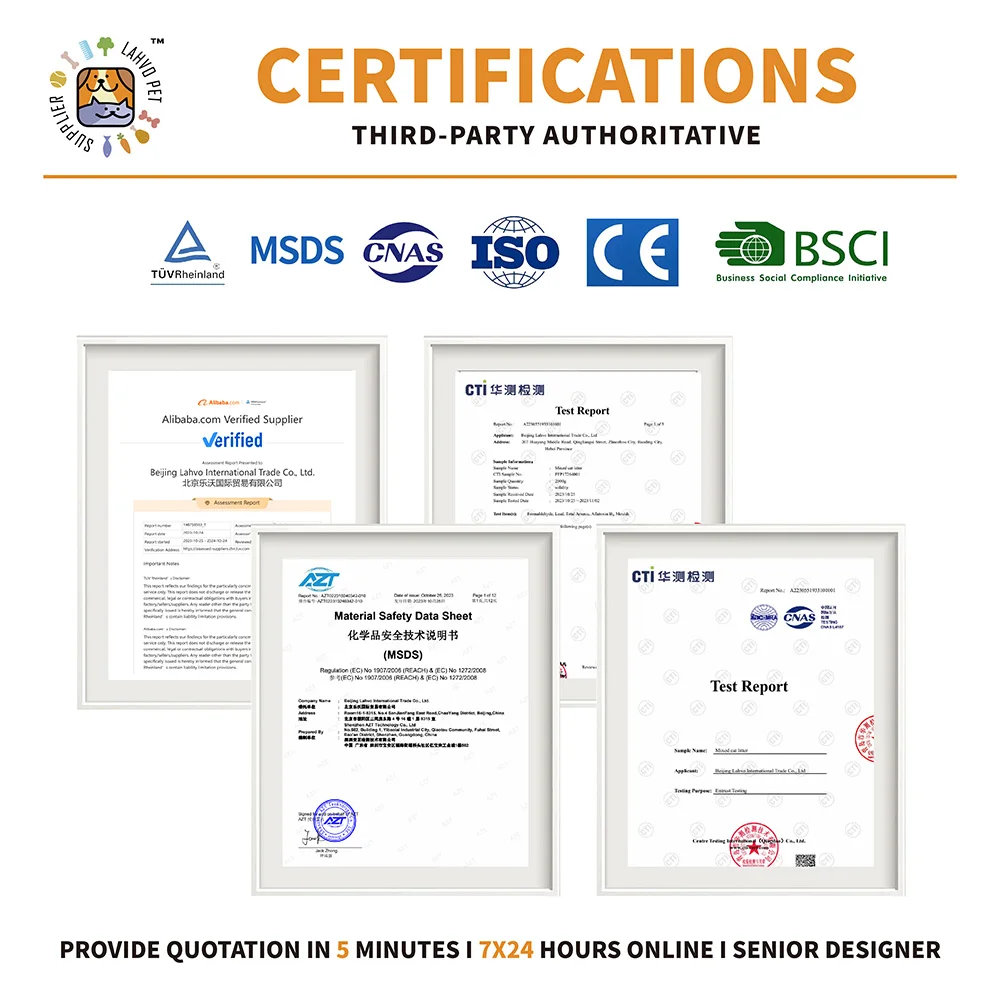 Beijing Lahvo International Trade Co., Ltd. is a pet products comprehensive service enterprise integrating R&D, production,manufacturing and sales. Our mission is to make pets more "healthy, happy and free". The products we manufacture are of high quality and low cost, benefiting customers and serving pets. We have advanced productiontechnology and equipment, with a daily output of 200 tons of cat litter in more than 10 categories, and more than 100 kinds of petproducts. We serve the global international market and welcome OEM and ODM cooperation.Please log on to www.lahvopets.com to contact us. Thank you for your patronage, so that you can get more high-quality andsatisfactory products and services.
