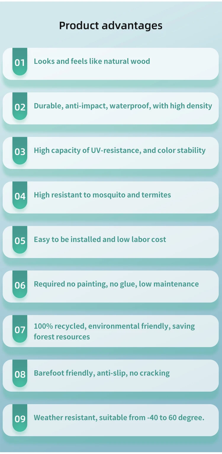 Size | 1meter, 2 meters, etc. | Raw Material | 60%Wood fiber+30%HDPE+10additives |