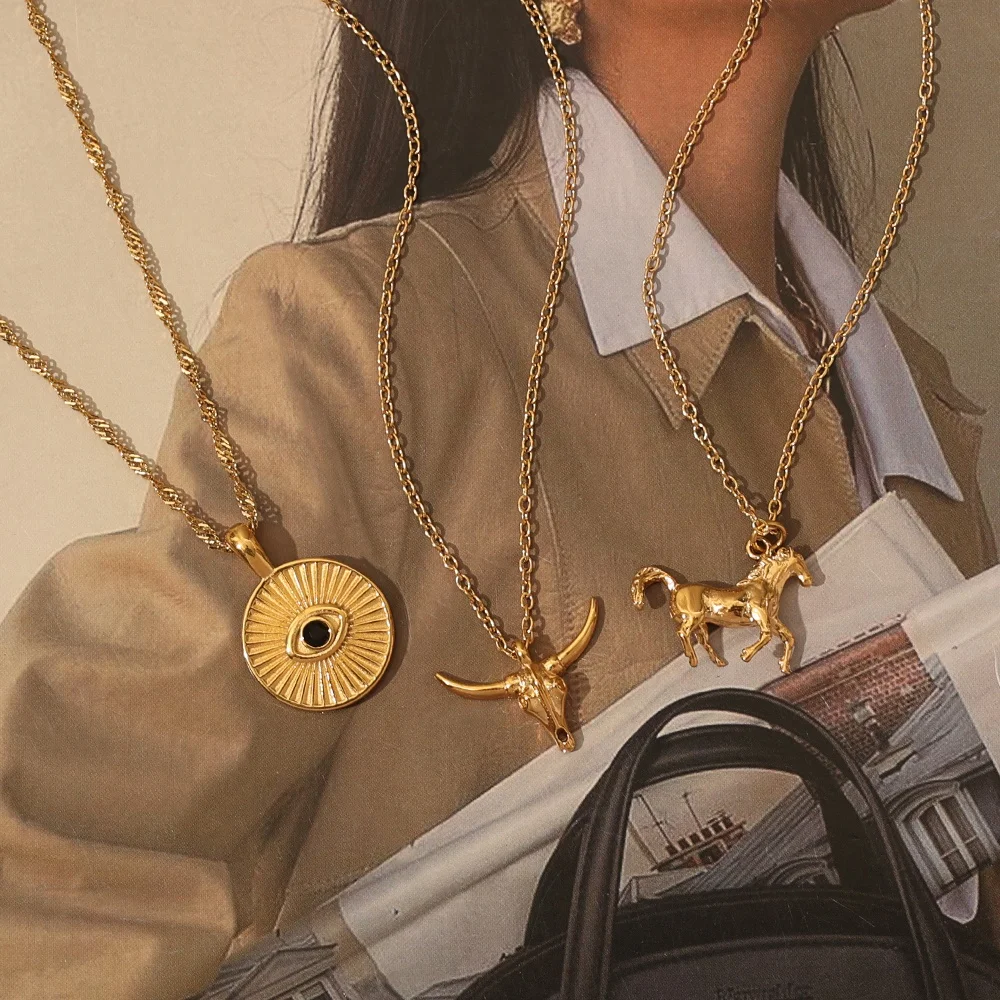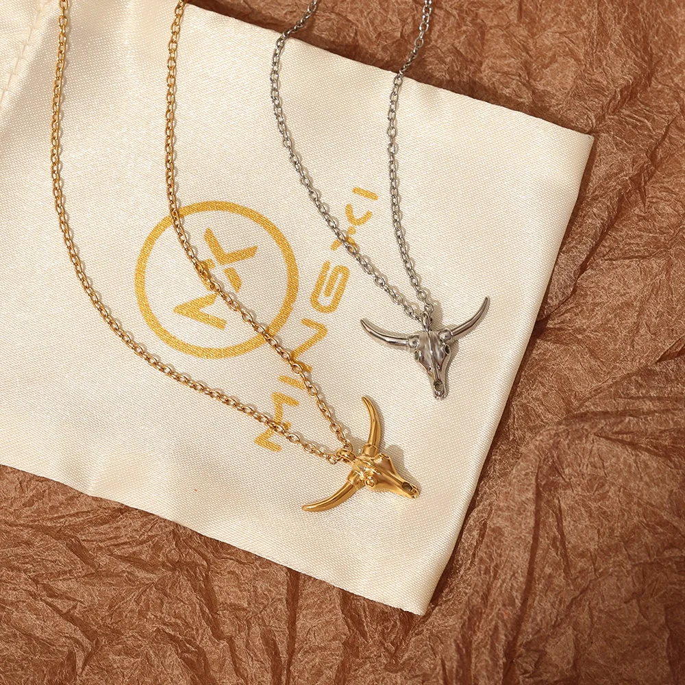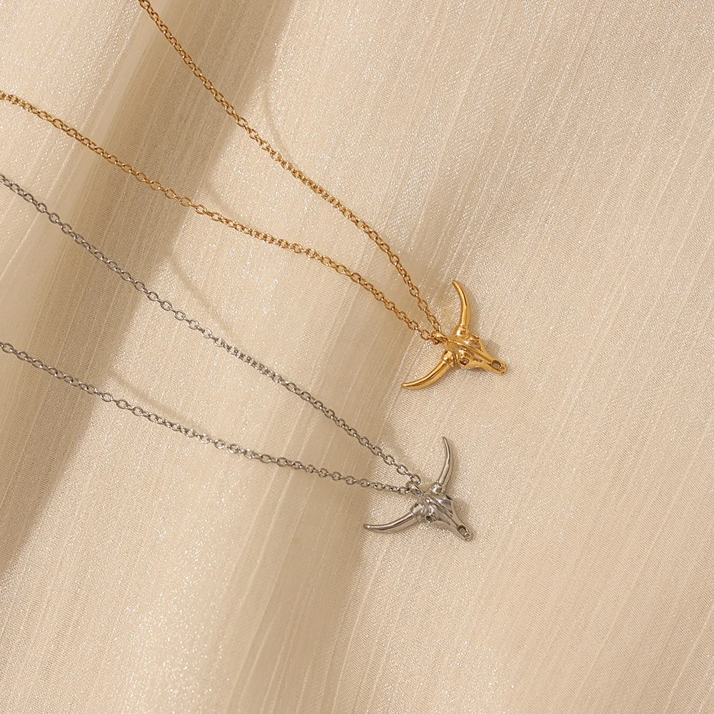 Trendy Jewelry 18k Gold Plated Stainless Steel Animal Head Horn Pendant Necklace Bull Head Fighter Necklace Bull Head Necklace