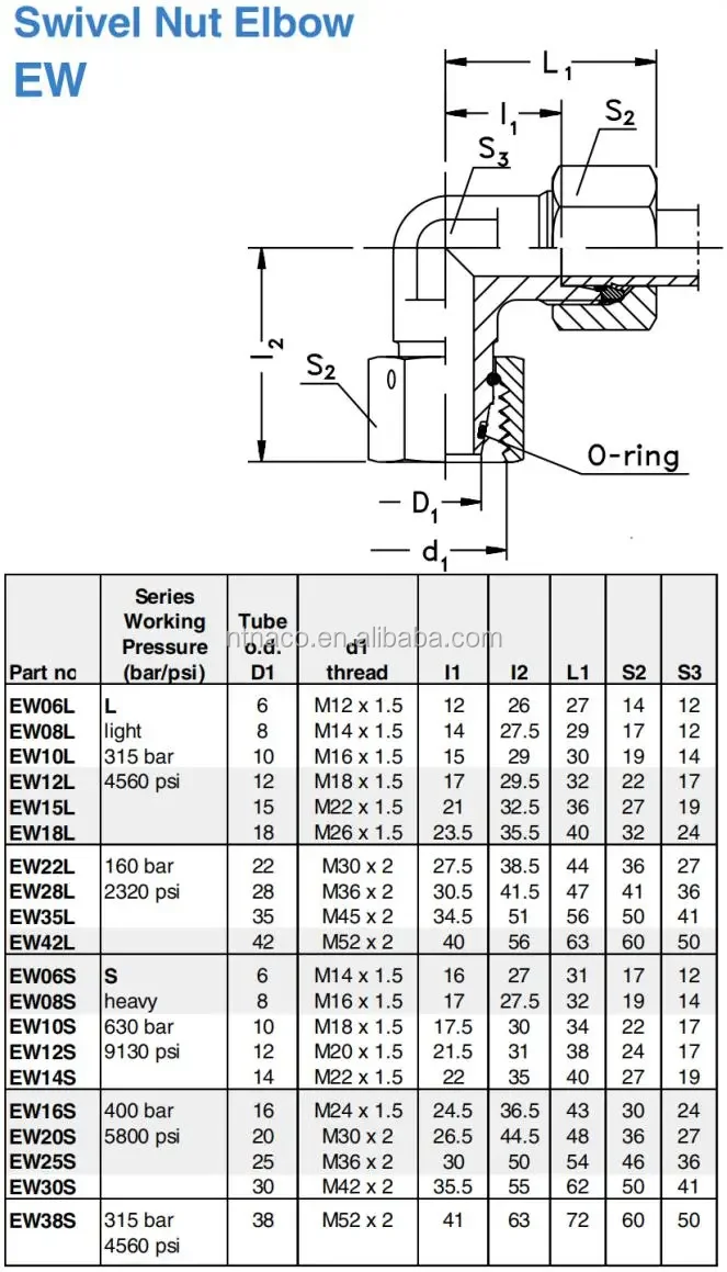 Stainless Steel DIN 2353/ ISO 8434.1 Light 6L 42L Bite Type Fitting Swivel Elbow Hydraulic Tube Fitting