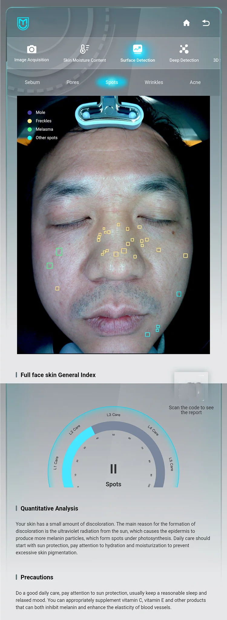 Feature | Acne analysis, Skin Wrinkle analysis |