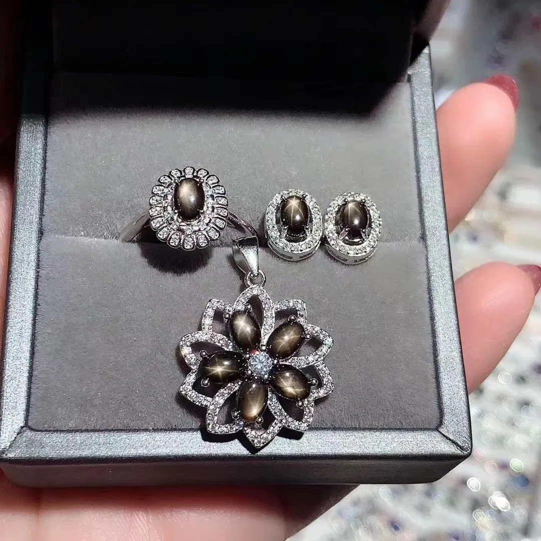 Product Name | High Quality Fashion 925 Sterling Silver Dubai Earrings Natural Sapphire Jewellery Jewelry Sets For Women |