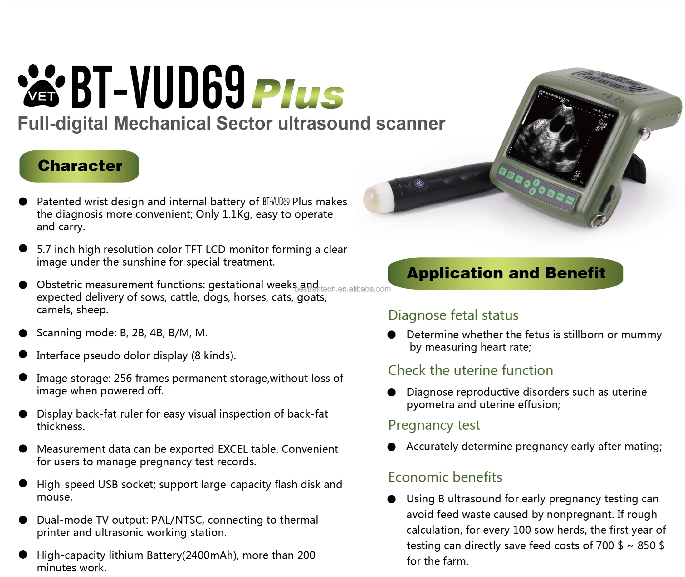 BT VUD69 Bestran fast delivery vet USG machine portable Veterinary Ultrasound Scanner with battery