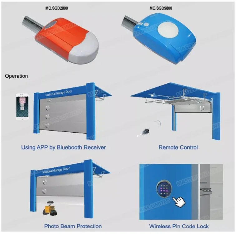 Options | Wall switch, photocell, Wireless pin code lock, Back-up battery | ||||||