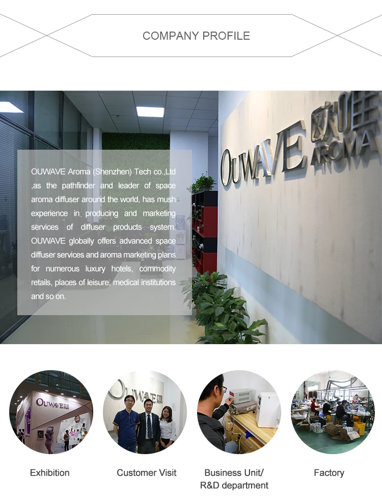 Ouwave Aroma Tech (Shenzhen) CO.,LTD is one of the biggest professional scent machine manufacturer located in Shenzhen, China,Which have more than 8 years experience in R&D and producing scent machines to service more than 70 countries all over the world.