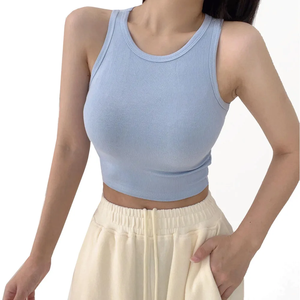 Fashion Wholesale Women Basic Casual Fitness Gym Crop Top Recycled Sleeveless Knitted Ladies Yoga Gym Ribbed Women Tank Tops $1.99-2.98