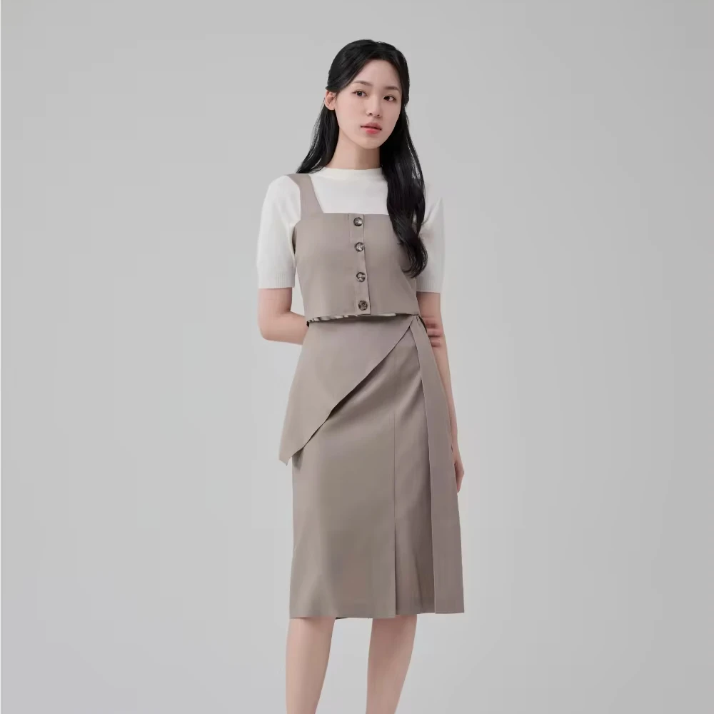 [HYEYEONG KIM] CO-ORD SET VEST Trending Products 2024 New Arrivals Wholesale Clothes Taupe/bluemint S/M Korean Fashion $101.00