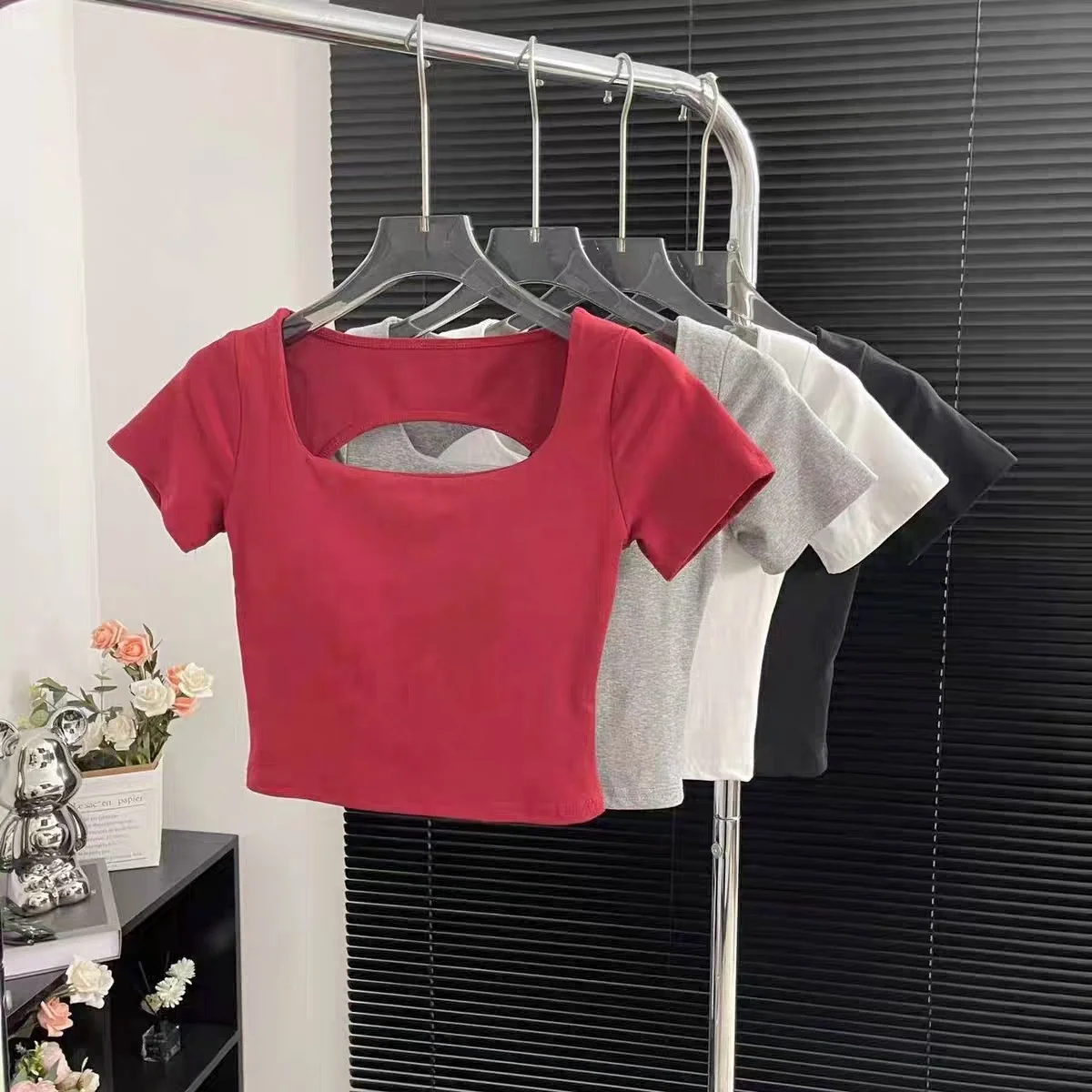 Competitive Price Ladies Crop Top Blank Crop Tops Wholesale Cheap Loose Knitted Short Sleeve Top $2.09-2.19