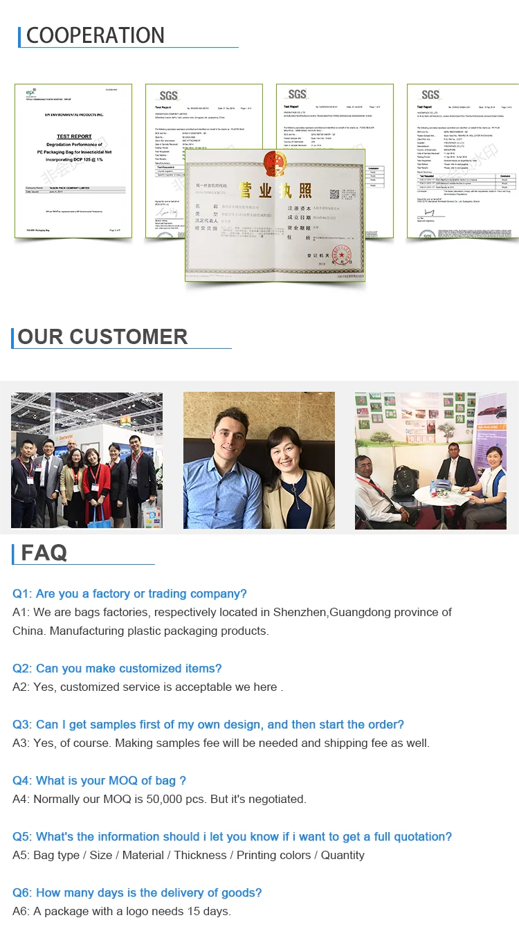 Q1:Are you a factory or trading company?A1:We are bags factories,respectively located in Huizhou, Guangdong province of China.Manufacturing plastic packaging products.