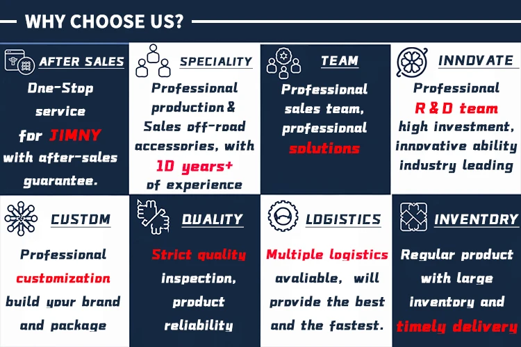4X4 Car Parts, jimny parts,JEEP parts, Bronco parts, Defender parts and so on.