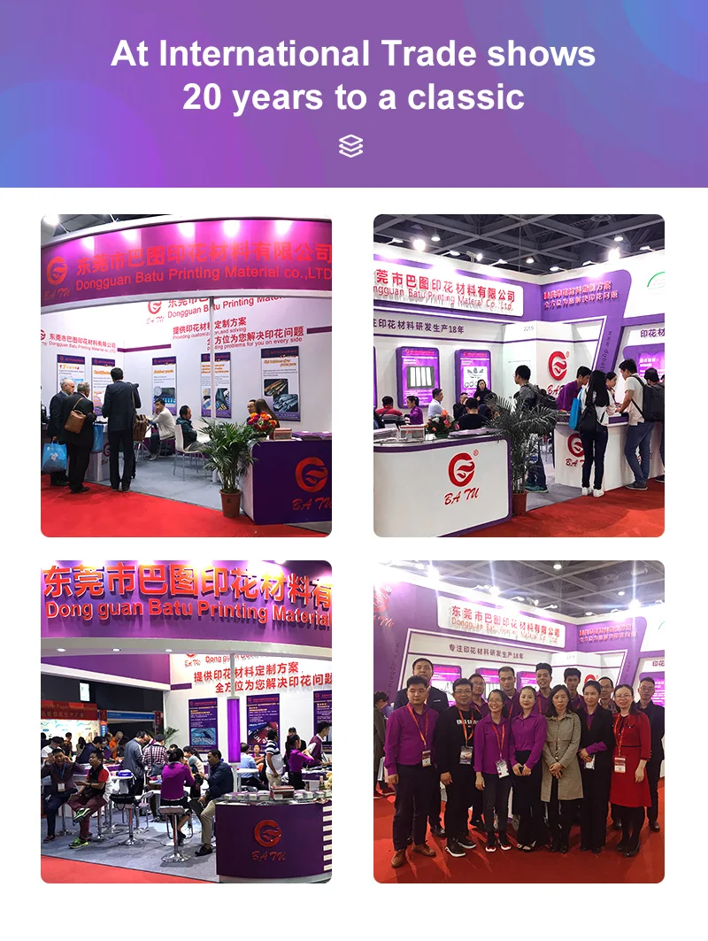 At present, “BATU” brand series products have got the recognition and praise from NIKE, ADIDAS, CK, and other famous garment brands, and have gained great market popularity. Our products are good selling not only in domestic market, but also in international markets, we have a deep cooperative relationship with dealers and screen printing factories from Bangladesh, India, Indonesia, Cambodia, Vietnam, Pakistan, Turkey, Thailand, Africa, America, etc.