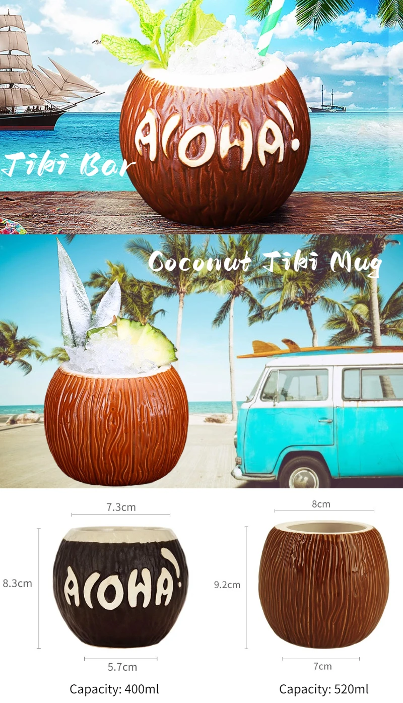 Product name | Creative Ceramic Cocktail Cup Coconut Shaped Tiki Mugs for Bar Tiki Decor |