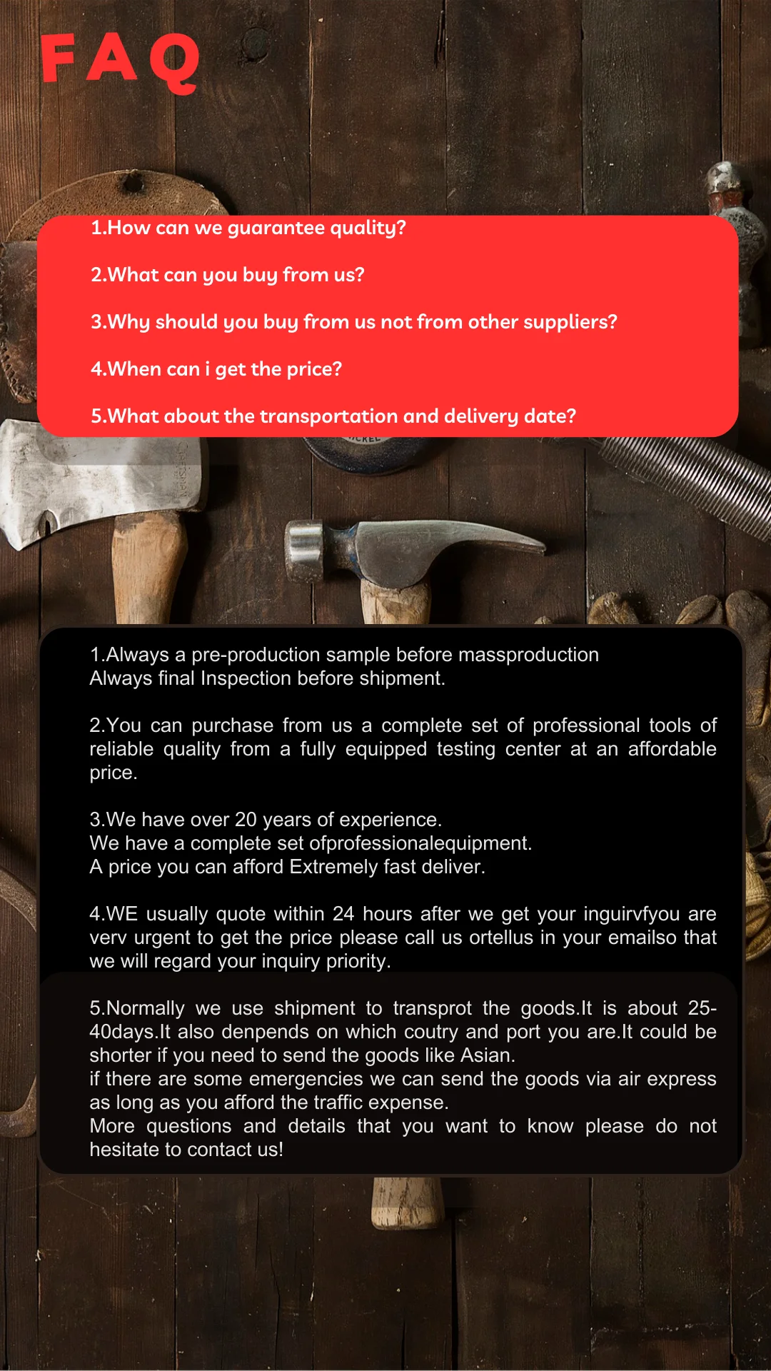 Welcome to our powerful hammer factory, where precision meets strength. Our factory has been at the forefront of the hammer-making industry for over a decade, consistently providing our customers with high-quality and durable tools. Equipped with state-of-the-art technology and skilled craftsmanship, we strive to deliver nothing but excellence.At our factory, we prioritize innovation and creativity, constantly developing new and improved hammers that are tailored to meet the evolving needs of our customers. We understand that every project requires a different tool, and that's why we offer custom-made hammers that are personalized to your specifications.