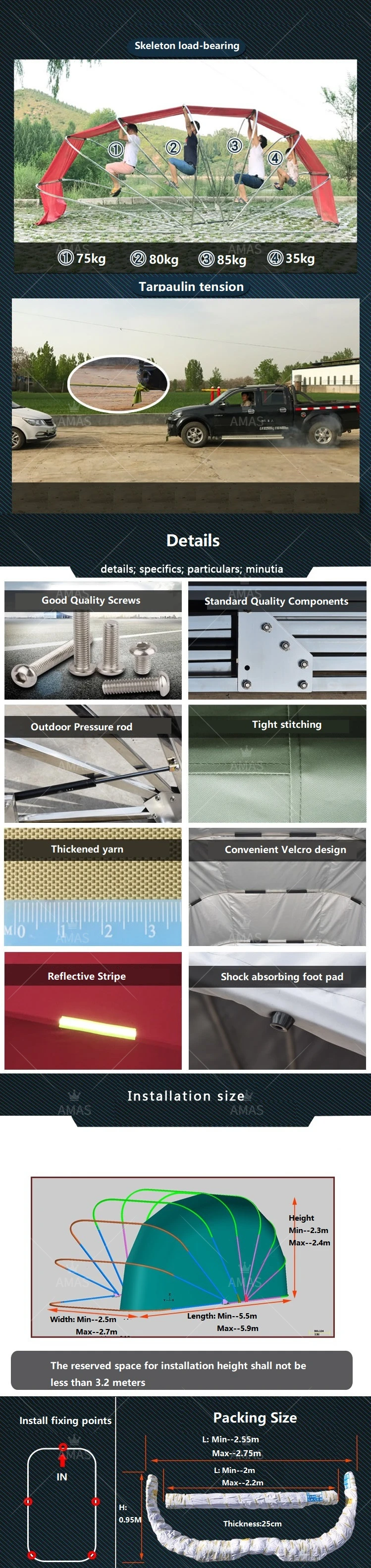 4. The fabric have a certain function of bearing tension, corrosion, rain and high temperature.