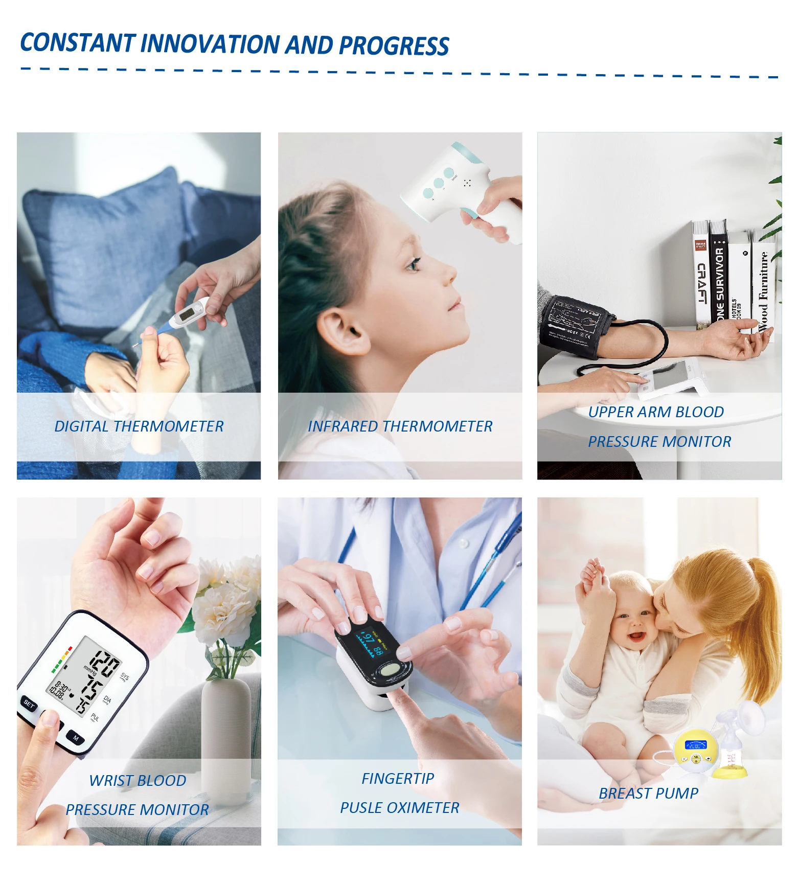 A: We are a factory. We have been in business for more than 20 years, starting with digital thermometers then moving into digital blood pressure , Infrared Thermometer , Breast Pump ,Oximeter etc.BP apparatus