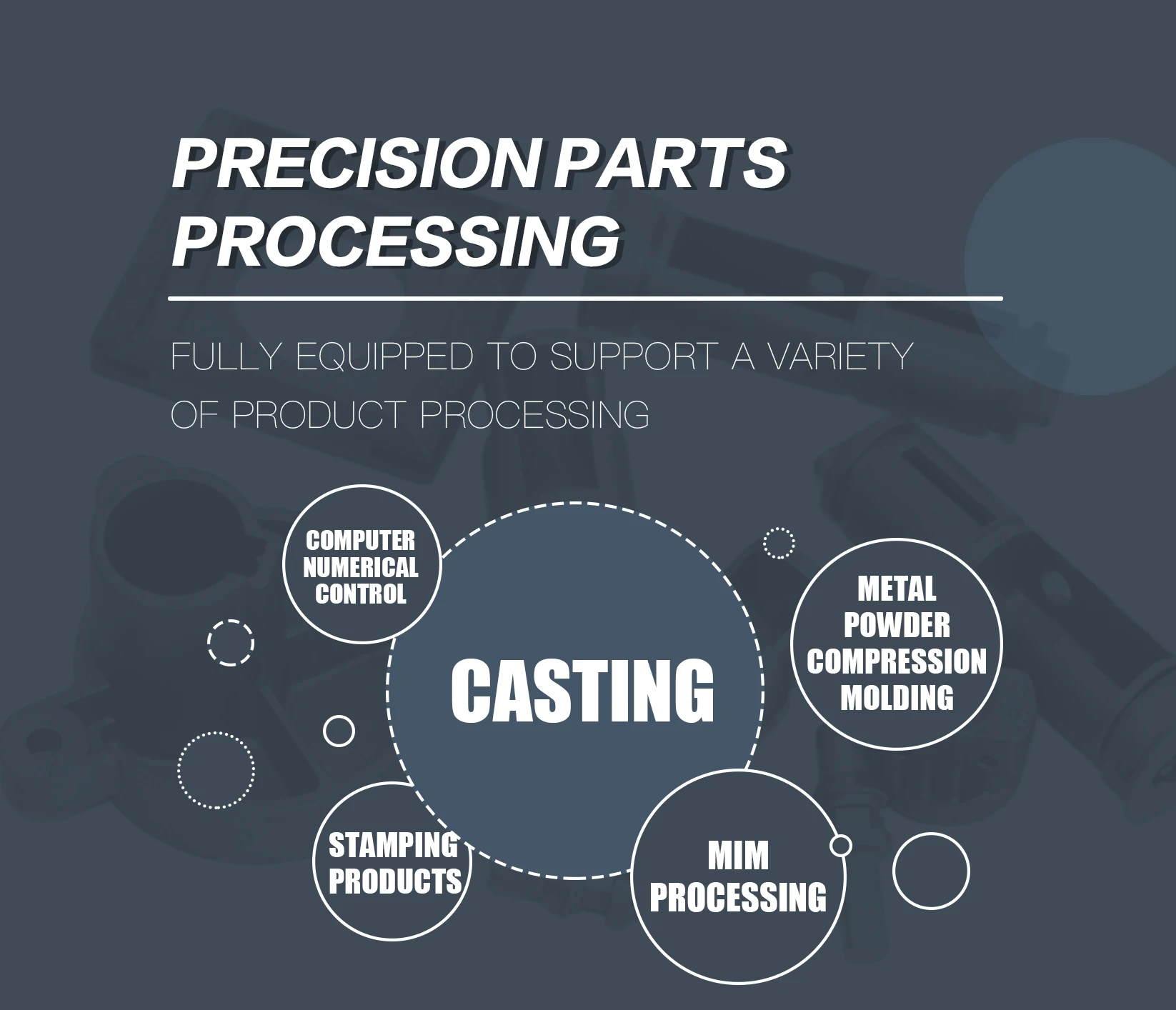 Testing equipment | CMM;Tool microscope;multi-joint arm;Automatic height gauge;Manual height gauge;Dial gauge;Marble platform;Roughness measurement | |