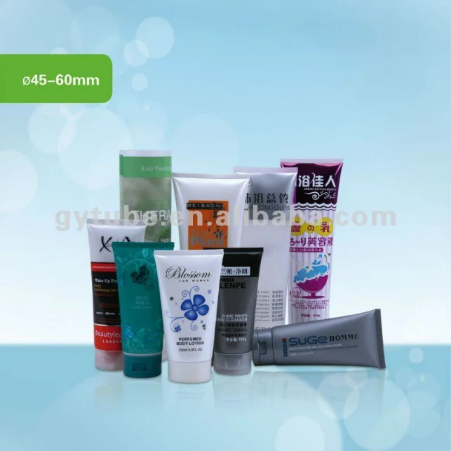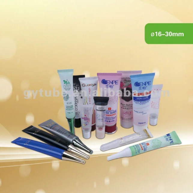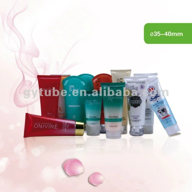 Plastic tube container for cosmetic packaging.