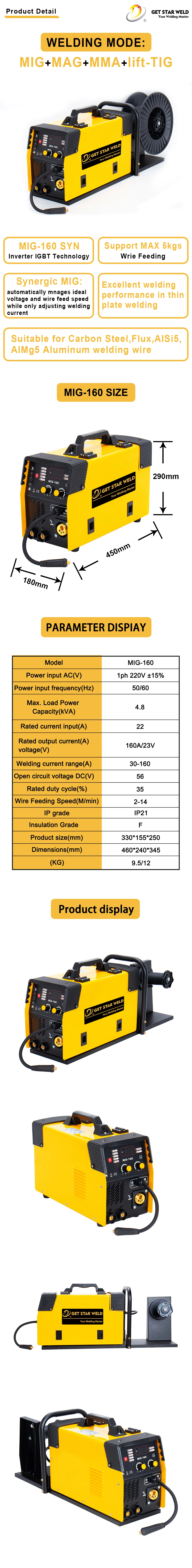 Get star Weld Mig Welder Aluminum External Pallet Igbt Mig Welding Machine Without Gas