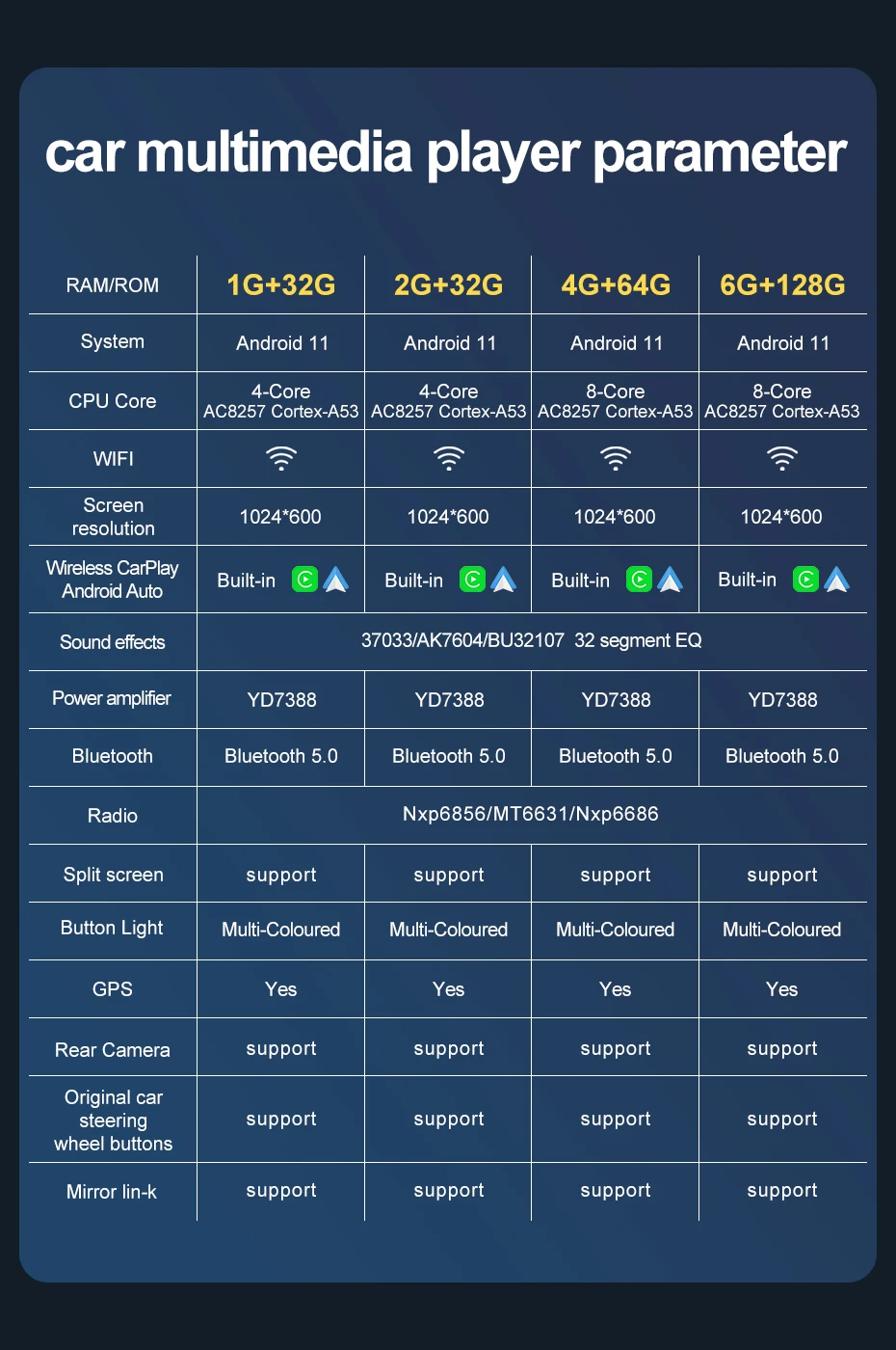 Function: | built-in Bluetooth, wireless carplay wireless Android AUTO GPS navigation WiFi MIC, external 2 USB interfaces |